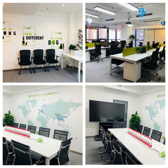 网旭科技的logo在灯光的照耀下格外显眼,办公区内绿植盆栽随处可见,为办公室增添了不少生机,也预示着网旭的未来朝气蓬勃!