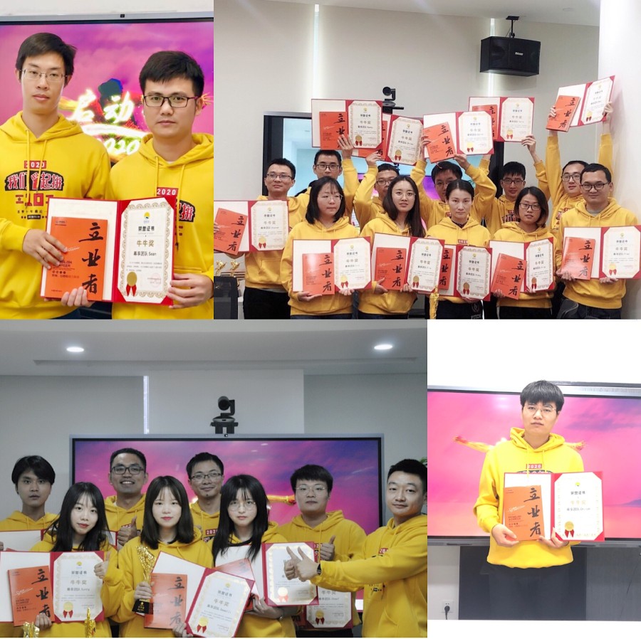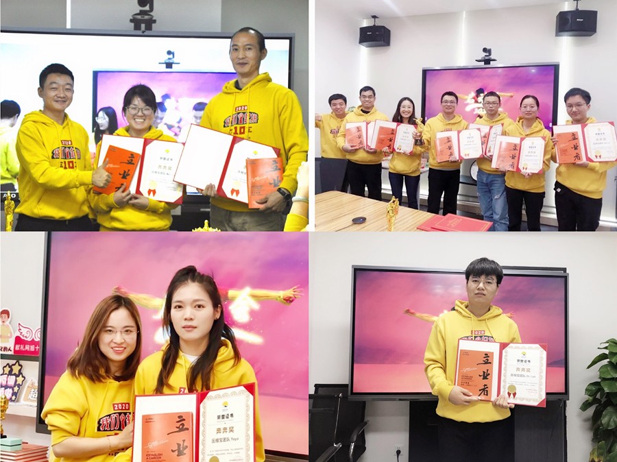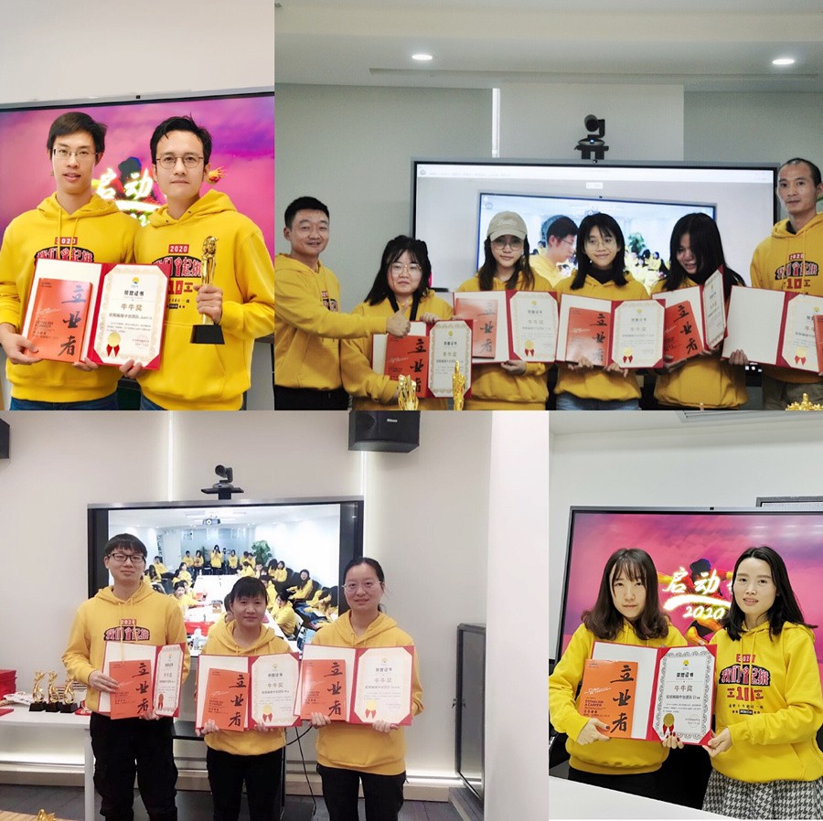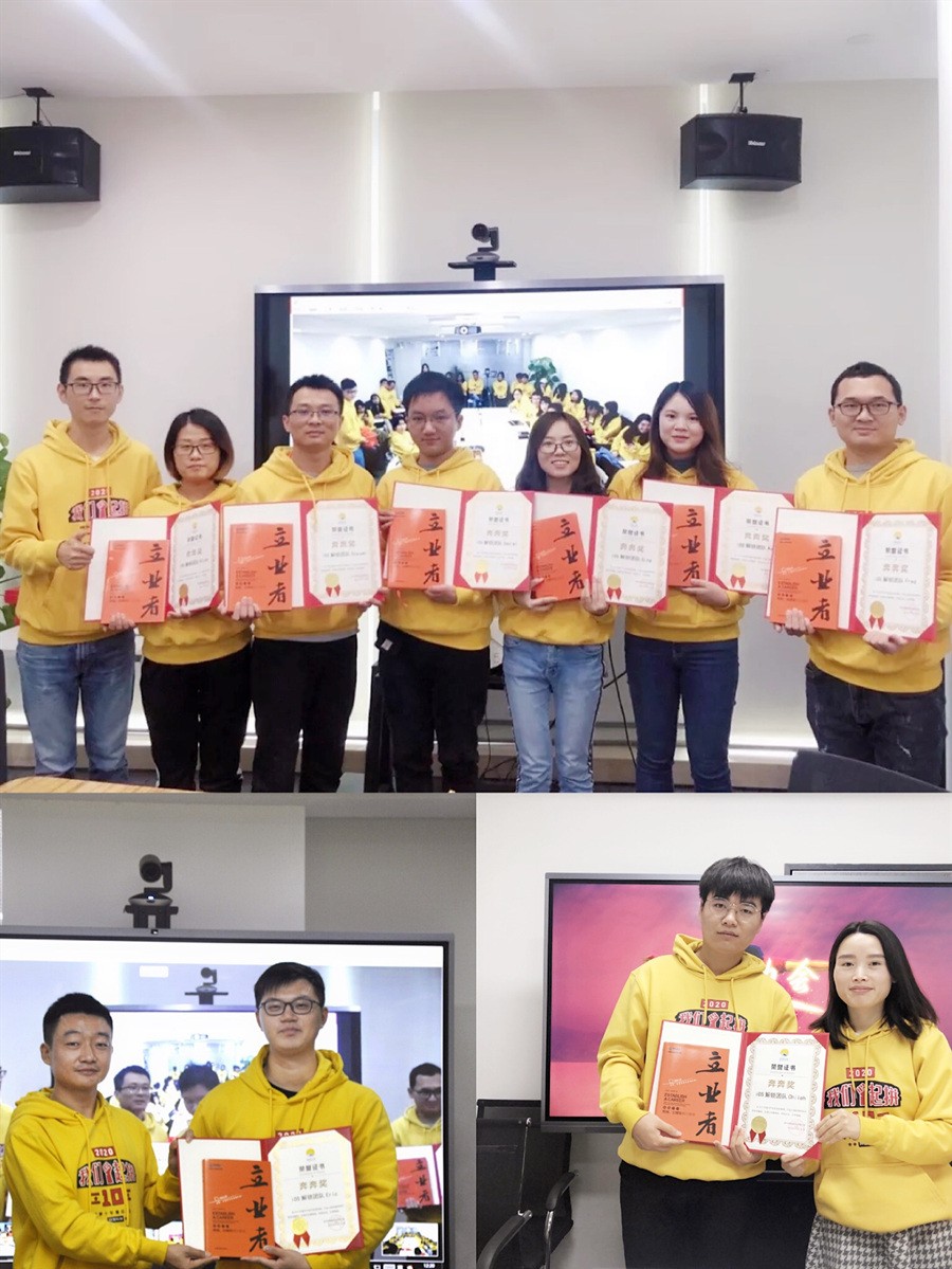 接下来是年度团队奖,首先是牛牛奖,又名万里长城奖,是因PO线持续投入开发、改进,实现销售和利润的稳定并持续增长,对公司的销售起到主要支撑作用。Aaron公布了2019年牛牛奖第一个获奖团队——幕享团队,深圳有Sean(由Harry颁发荣誉证书),武汉有Bobby、ALisa、Steven、Shiver、Lin、Daniel、Fred、Bear、Terry、Vincy、Ella(由Will和Bobby颁发荣誉证书)南昌有Taylor、Cheef、Phil、Sam,Sunny,Gemelli、Liz,(由Aaron和Zoe颁发荣誉证书)西安有Chiloh(由Ivy颁发荣誉证书),颁奖仪式之后,由幕享班长Taylor代领奖杯并发言。第二个牛牛奖--视频编辑组中台团队:其中深圳有Justin(Harry颁发荣誉证书),武汉有Rachel、Gavin、May(Will颁发荣誉证书),南昌有Felix、Tina、Fiona、Emily、Alice(Taylor颁发荣誉证书),西安有Elsa(Ivy颁发荣誉证书),最后由视频中台班长Justin代领奖杯并发言。