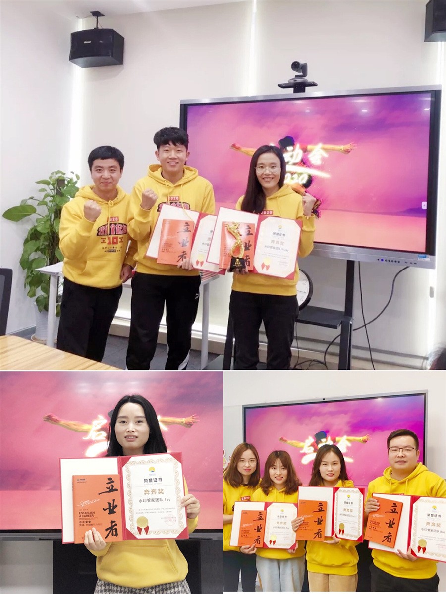 下一个奖项是奔奔奖,又名马到成功奖,公司在今年提出了千军万马,涌现出了多个新的产品线,也有多个班长带领各自团队交出了不错的成绩单!Will公布了第一个奔奔奖获奖团队——水印管家:武汉有Vicky.、Bill(Bobby颁发荣誉证书)深圳有Paula、Bob、Amy(Lily颁发荣誉证书)西安有Ivy,由Vicky代领奖杯并发言。第二个奔奔奖的获奖团队--Ios解锁团队,武汉有Steven.、Alisa、Daniel、Fred、Ava、Gina,(Bobby颁发荣誉证书)南昌有Eric(Aaron颁发荣誉证书)西安有Chiloh(Ivy颁发荣誉证书)由Alisa代领奖杯并发言。