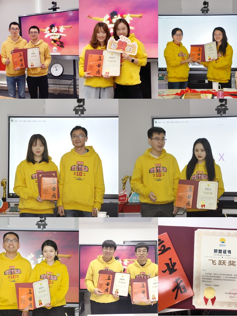 休息片刻,迎来了网旭“一年香,三年醇和五年陈授礼仪式”。“一年香”指入职满一年的网旭人,深圳的一年香同事有:Paula,Thor、Bob、Kiki、Ruki、Yoyo、Sophia(由Lily颁发一年香徽章);武汉一年香的同事有:Vincy、Gina、Sumi、Victor(由Will颁发一年香徽章);南昌一年香有:Alina、Gemelli、Cheef、Eric;由(Aaron和Taylor)为其颁发一年香徽章;西安是Paulline(Ivy颁发一年香徽章)
