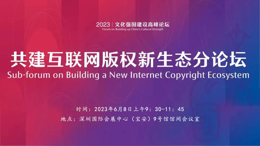 6月8日,2023文化强国建设高峰论坛——共建互联网版权新生态分论坛在深圳国际会展中心(宝安)9号馆馆间会议室举办。