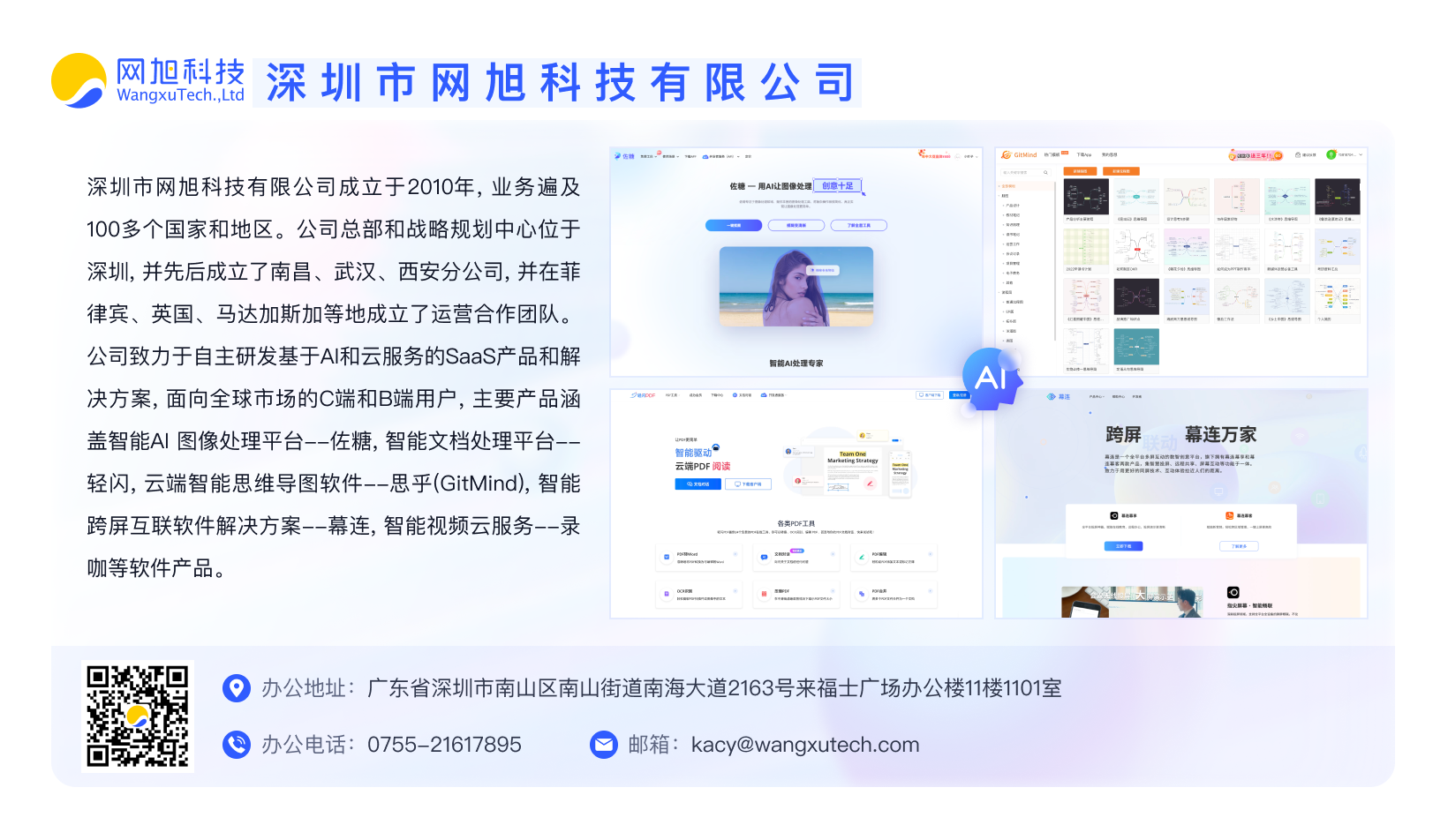 网旭产品与AI的结合,有了更多的智慧元素和个性化需求,产品的设计变得更加智能,为不同的应用场景提供更智能和便捷的体验。紧跟AI发展的同时,网旭科技也时刻关注数据隐私的保护,为打造安全的AI环境保驾护航。