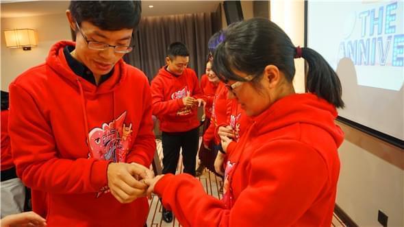 网旭科技走过了七个年头,离不开那些每一位员工,尤其是那些能长期在网旭奋斗的人。网旭在今年特意为在公司工作满3年和5年的同事每人定制了一份镌刻着自己名字的真金纪念品。陪网旭走过三年时光的,每人一条以网旭logo为设计元素的手链;伴网旭跨过五年风雨的,每人一枚精致的戒指。公司的总经理和技术总经理两位创始人分别为每一位满3年和5年的同事戴上了纪念品。对于他们,网旭是骄傲的,正是网旭不断地发展壮大,始终坚持自己的核心价值观,才能让他们留下;对于他们,网旭更是感恩的,正因为有他们,网旭的今天如此灿烂,网旭的明天才让人期待。